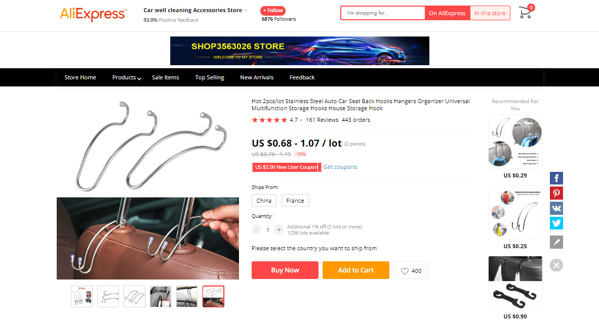 AliExpress find: price – $0.68-1.07, rating – 4.7*, number of orders – 443