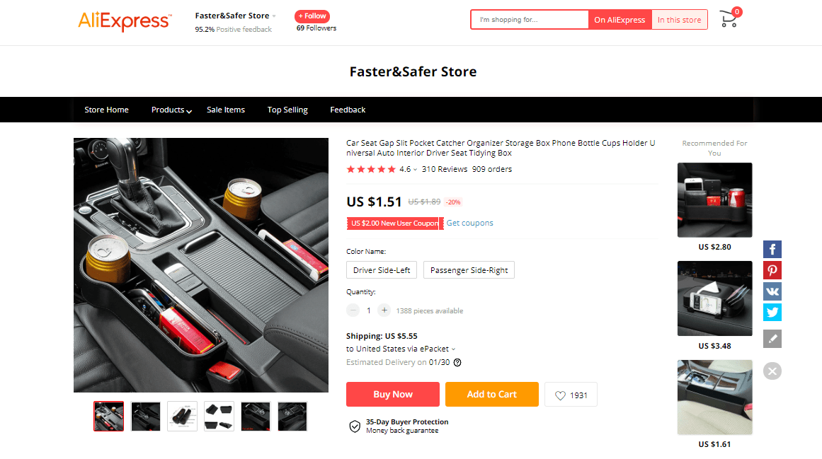 AliExpress find: price – $1.51, rating – 4.6*, number of orders – 909