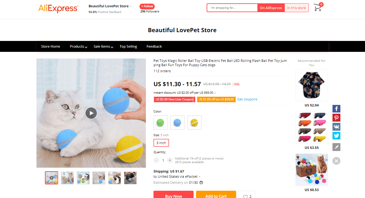 AliExpress find: price – $11.30-11.57, number of orders – 112