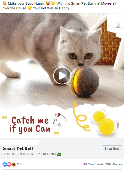 Ad stats: 3.5K likes, 96 comments, 399 shares