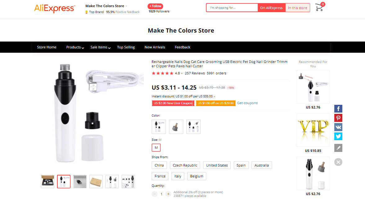 AliExpress find: price – $3.11-14.25, rating – 4.8*, number of orders – 5991