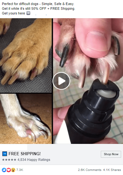 Ad stats: 7.3K likes, 2.6K comments, 4.1K shares