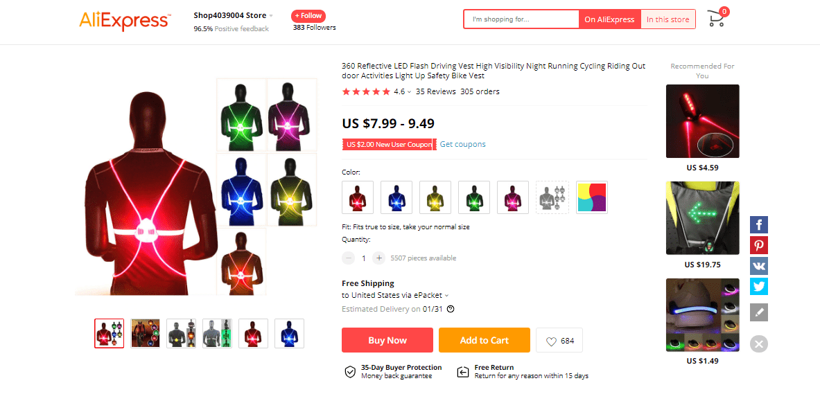 AliExpress find: price – $7.99-9.49, rating – 4.6*, number of orders – 305