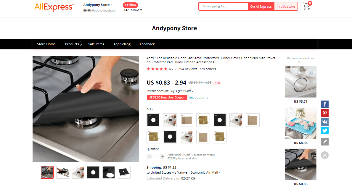 AliExpress find: price – $0.83-2.94, rating – 4.7*, number of orders – 778