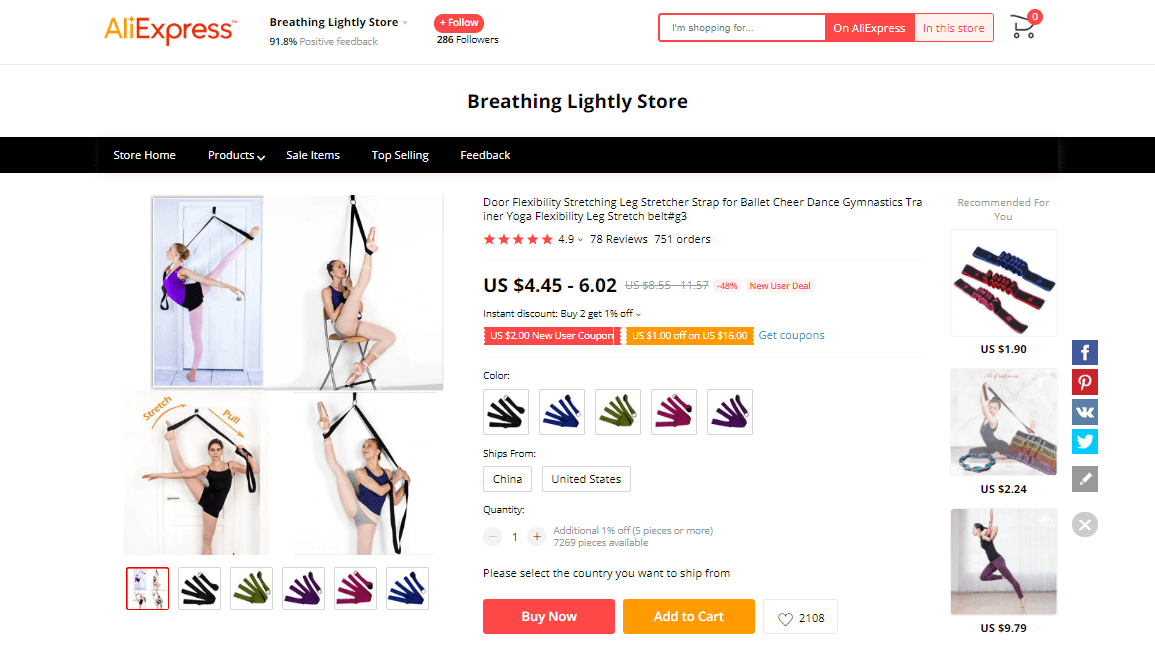 AliExpress find: price – $4.45-6.02, rating – 4.9*, number of orders – 751