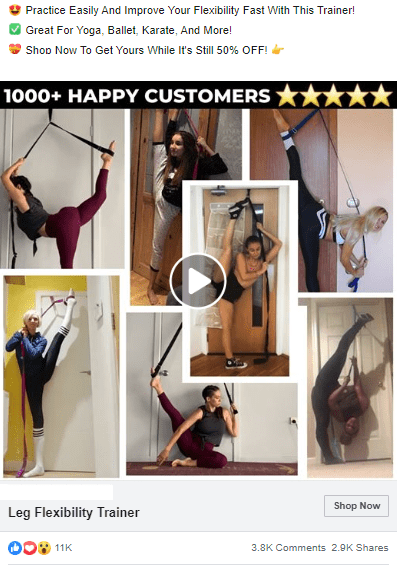 Ad stats: 11K likes, 3.8K comments, 2.9K shares