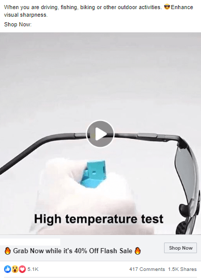 Ad stats: 5.1K likes, 417 comments, 1.5K shares